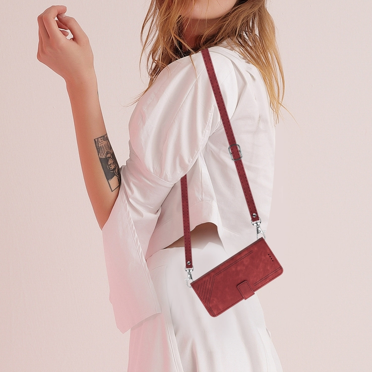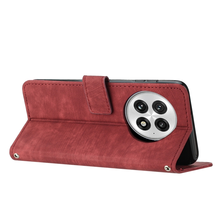 Funda de Cuero con Diseño de Rayas y Tacto de Piel para OnePlus 13 con Cordón (Rojo)