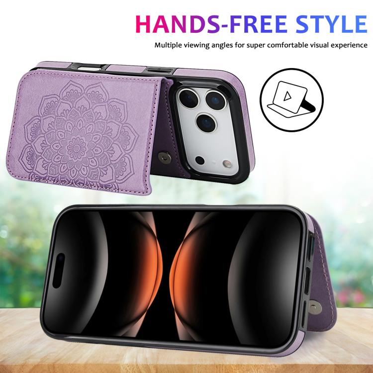 Funda de cuero con doble hebilla y diseño de mandala para iPhone 17 Pro Max (morado)