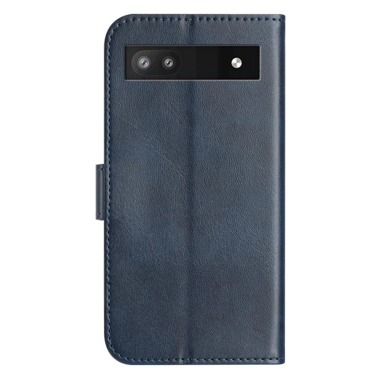 Funda de Cuero con Doble Pliegue en Forma de S para Google Pixel 6A (Azul Marino)