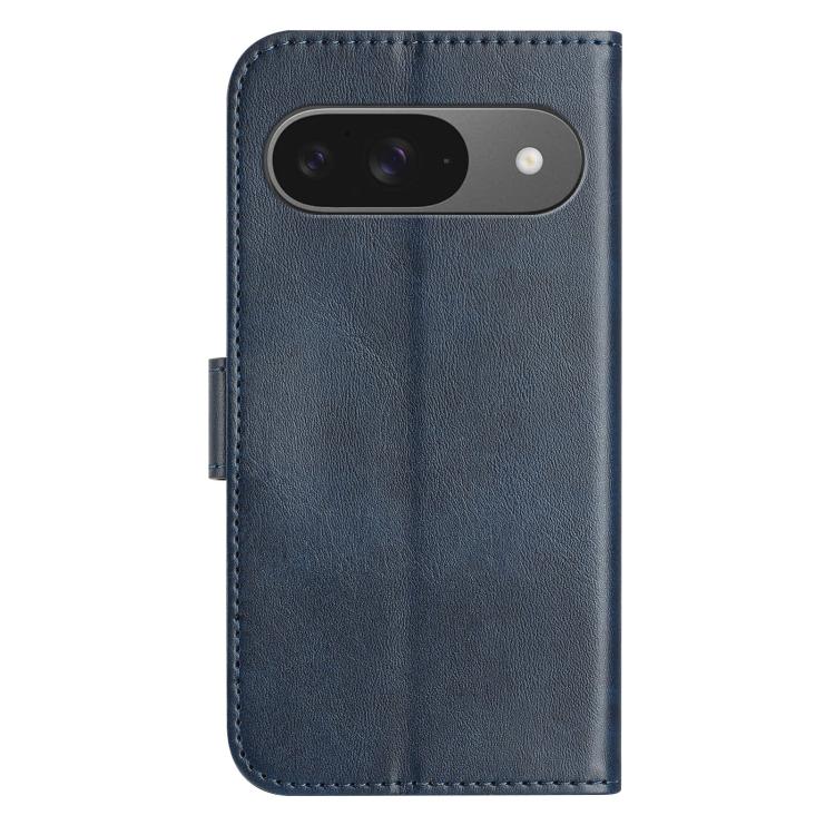 Funda de Cuero con Doble Pliegue en Forma de S para Google Pixel 9/9 Pro (Azul Marino)