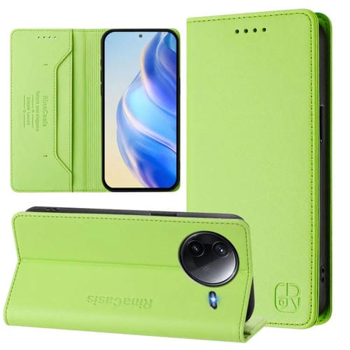 Funda de Cuero con Doble Pliegue y Succión Magnética para Redmi K80/K80 Pro Rc01 (Verde Hierba)