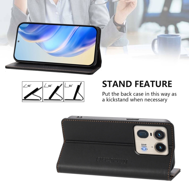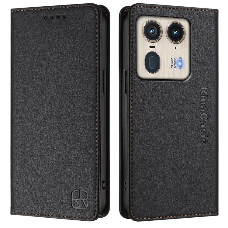 Funda de Cuero Motorola Edge 50 Ultra X50 Ultra Rc01 con Doble Pliegue y Succión Magnética (Negro)