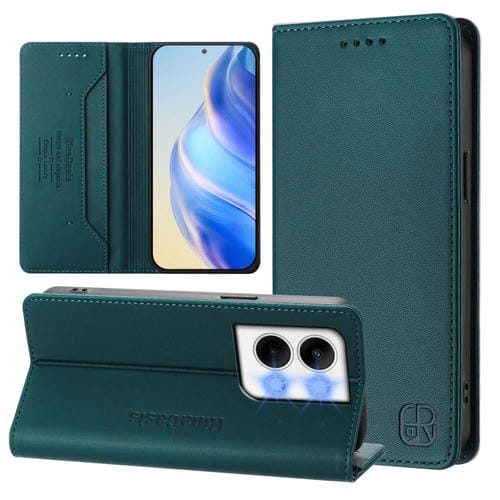 Funda de Cuero con Doble Pliegue y Succión Magnética Rfid para Oppo Reno9 5G / Reno9 Pro 5G Rc01 (Verde Oscuro)