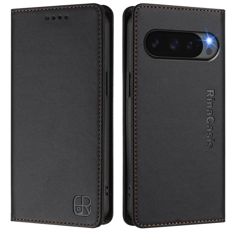 Funda de Cuero con Doble Pliegue y Succión Magnética Rfid para Google Pixel 10 Pro XL Rc01 (Negra)