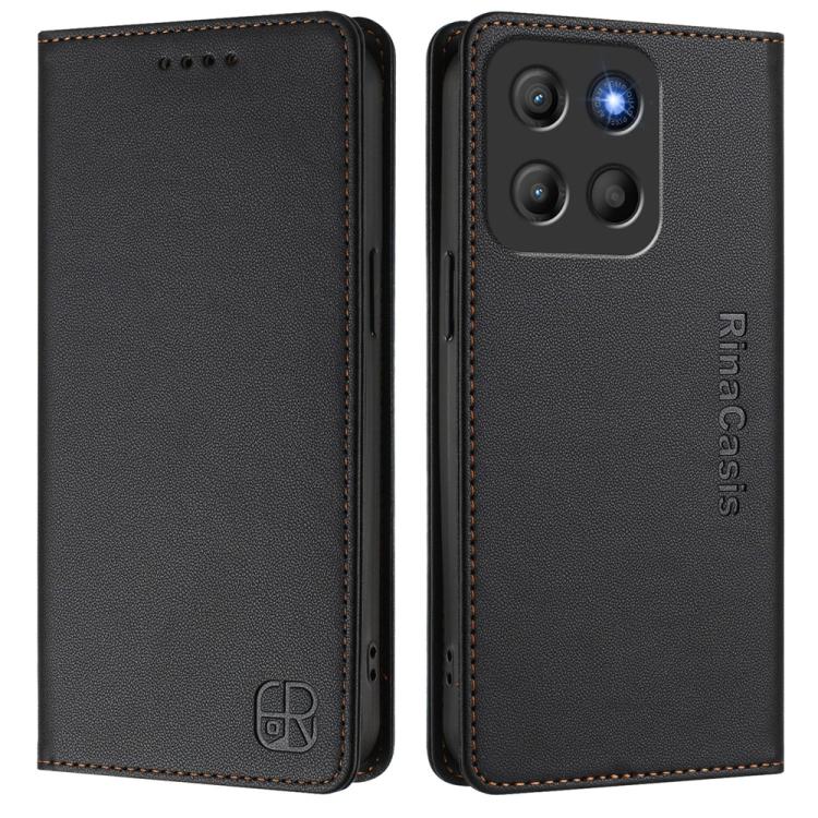 Funda de Cuero para Motorola Moto G15 Rc01 con Doble Pliegue y Succión Magnética Rfid (Negro)
