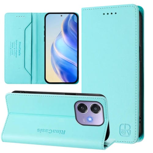 Funda de Cuero con Doble Pliegue y Cierre Magnético Rfid para Oppo A3X 5G / 4G / A3 5G / 4G Rc01 (Verde Menta)
