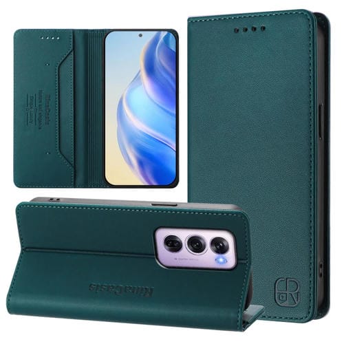 Funda de Cuero con Doble Pliegue y Succión Magnética Rfid para Oppo Reno12 Pro 5G Global Rc01 (Verde Oscuro)