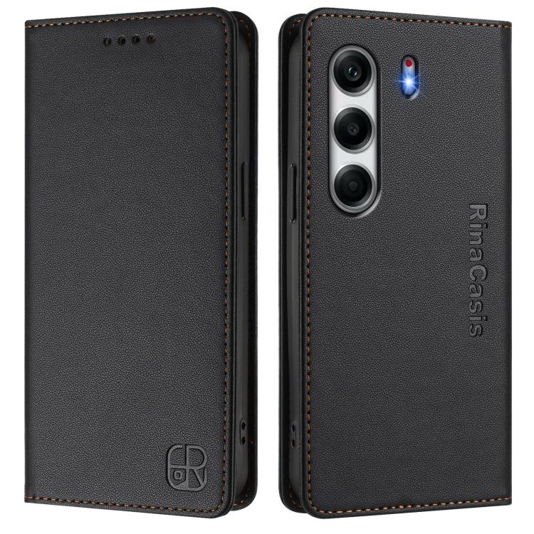Funda de Cuero para Tecno Camon 40 4G Rc01 con Doble Pliegue y Succión Magnética Rfid (Negra)