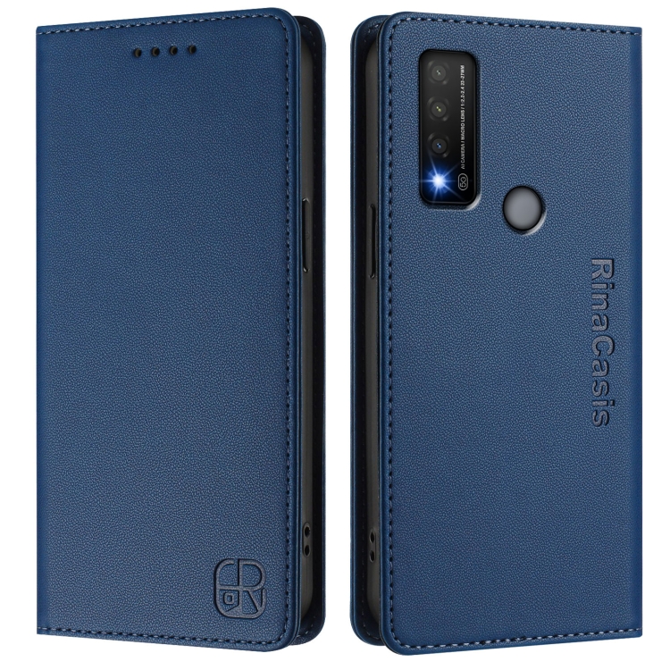 Funda de Cuero TCL 20 R 5G Rc01 con Doble Pliegue y Succión Magnética Rfid (Azul Oscuro)