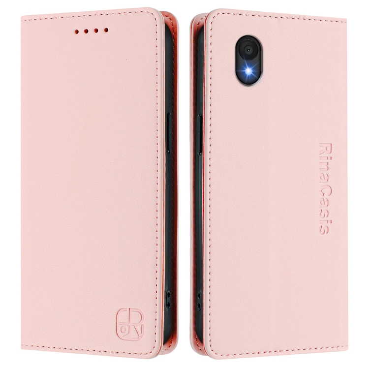 Funda de Cuero para Teléfono TCL 201 Rc01 con Doble Pliegue y Succión Magnética Rfid (Rosa)