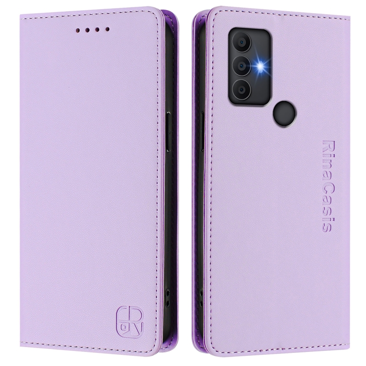 Funda de Cuero para Teléfono TCL 305/306 Rc01 con Doble Pliegue y Succión Magnética Rfid (Morado Claro)
