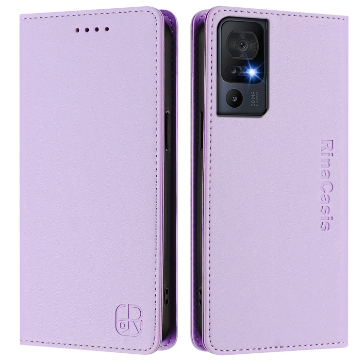 Funda de Cuero para TCL 40 Se Rc01 con Doble Pliegue y Succión Magnética Rfid (Morado Claro)
