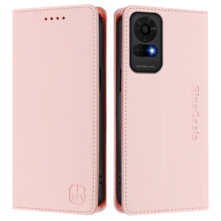 Funda de Cuero con Doble Pliegue y Succión Magnética RFID para TCL 50 Le Rc01 (Rosa)