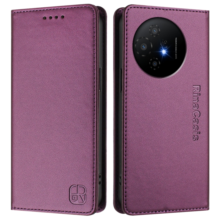 Funda de Cuero para Teléfono TCL 50 Xl 5G Rc01 con Doble Pliegue y Succión Magnética Rfid (Violeta)