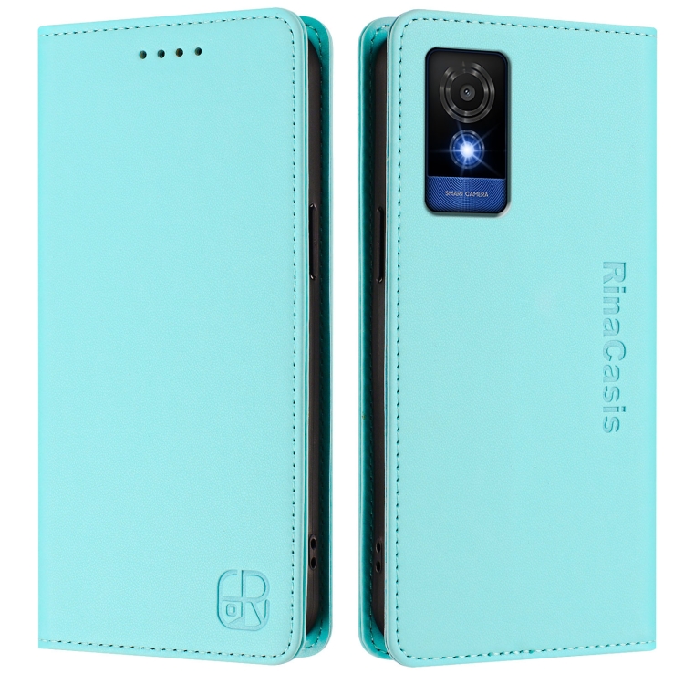 Funda de Cuero para Teléfono TCL 501 Rc01 con Doble Pliegue y Succión Magnética RFID (Verde Menta)