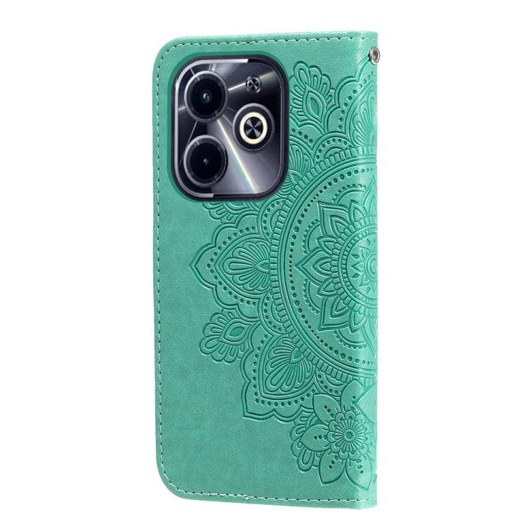 Funda de Cuero para Infinix Hot 40I con Estampado de Flores de Siete Pétalos (Verde)