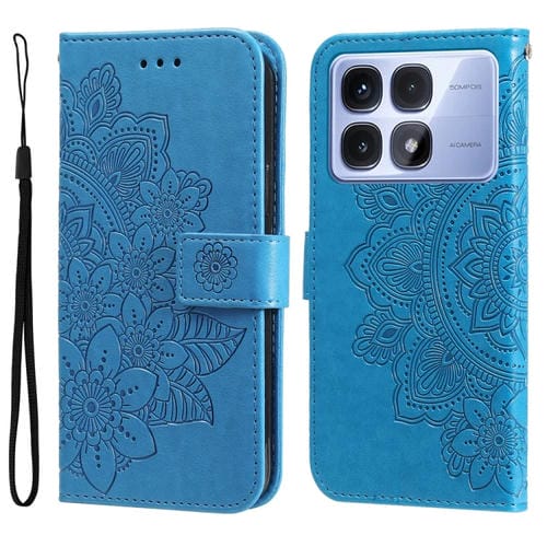 Funda de Cuero con Estampado de Flores de Siete Pétalos para Redmi K70 Ultra (Azul)