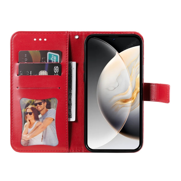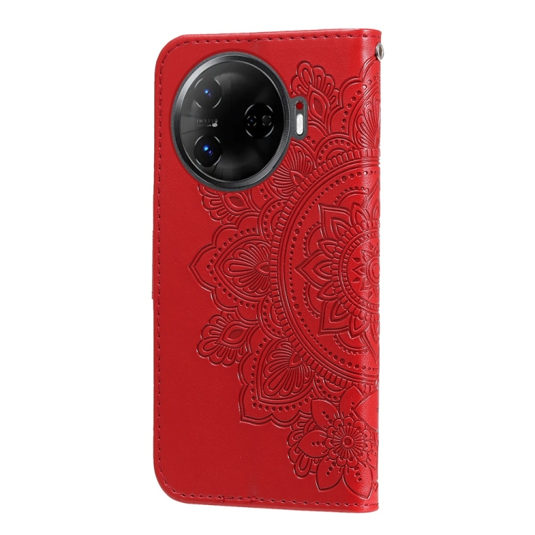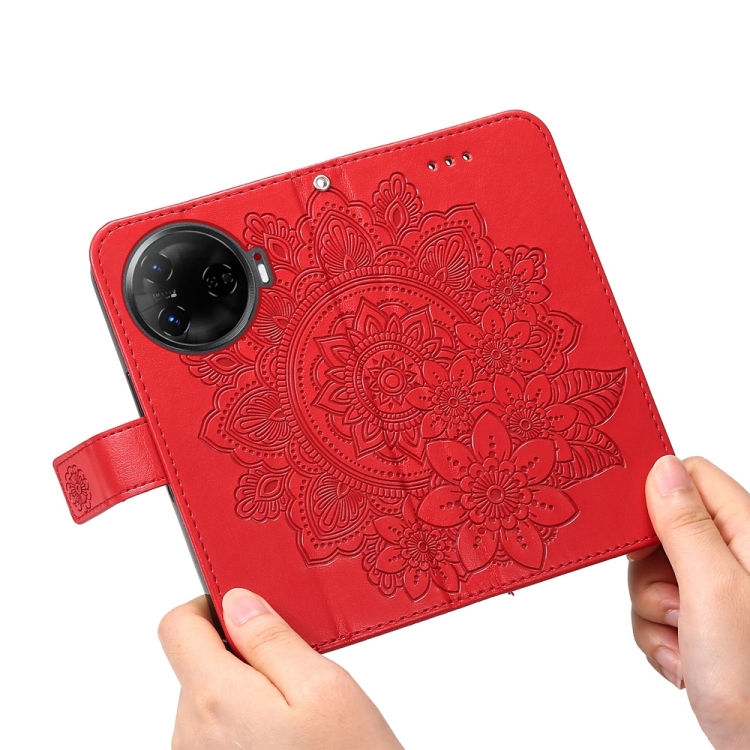 Funda de Cuero para Tecno Camon 30 Pro con Estampado de Flores de Siete Pétalos (Rojo)