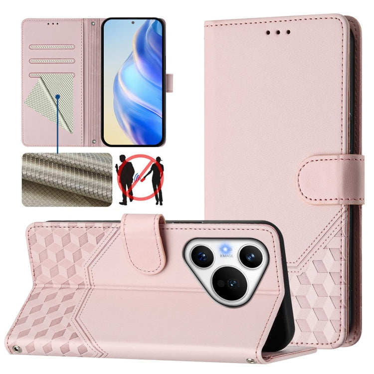 Funda de Cuero con Estampado de Panal RFID para Huawei Pura 70 (Rosa)