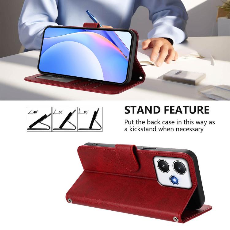 Funda de cuero con estampado RFID y cordón para Redmi 12 4G / 12 5G Global / India (rojo vino)