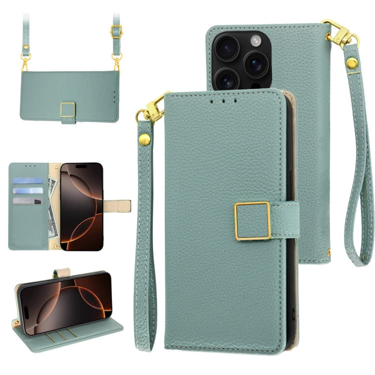 Funda de Cuero con Hebilla Cuadrada y Textura de Lichi para iPhone 16 Pro Max (Azul)