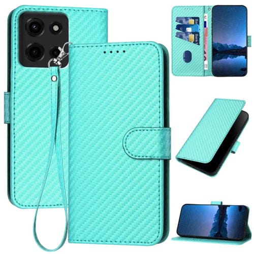 Funda de Cuero con Hebilla de Fibra de Carbono para Motorola Moto G 2025 Yx0070 con Cordón (Azul Claro)