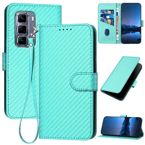 Funda de Cuero con Hebilla de Fibra de Carbono y Cordón para Infinix Hot 50 Pro+ 4G Yx0070 (Azul Claro)