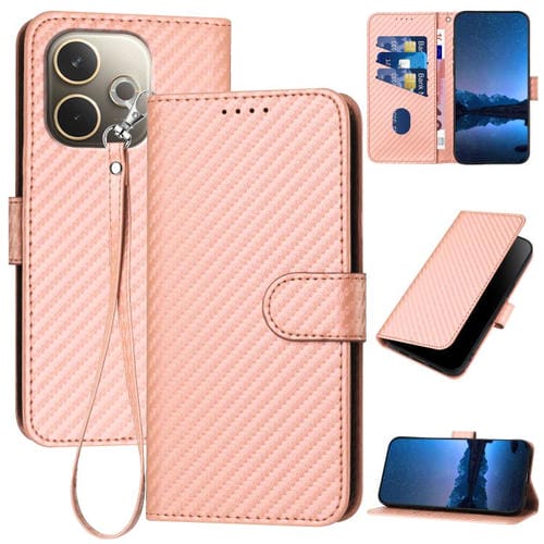Funda de Cuero con Hebilla de Fibra de Carbono y Cordón para Oppo A5 Pro 5G Yx0070 (Rosa)