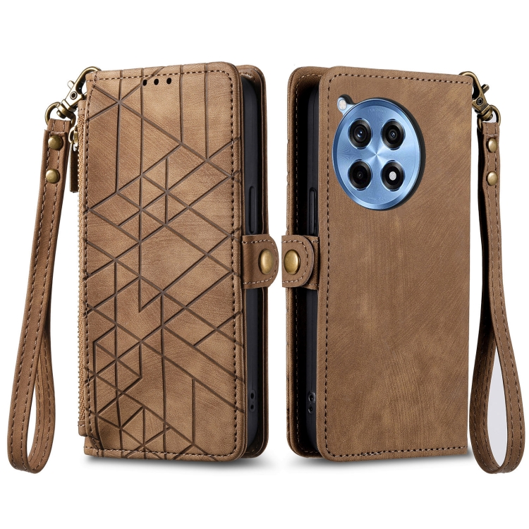 Funda de Cuero para OnePlus Ace 3 Pro con Hebilla Lateral y Cierre Geométrico (Marrón)