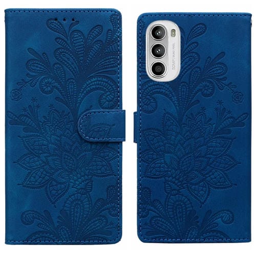 Funda de Cuero con Hebilla Magnética y Diseño Floral para Motorola Moto G52 4G/G82 (Azul)
