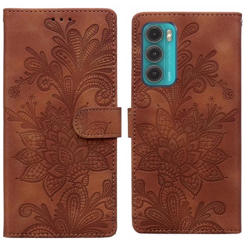 Funda de Cuero con Hebilla Magnética y Diseño Floral para Motorola Moto G60 (Marrón)