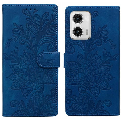 Funda de Cuero con Hebilla Magnética y Diseño Floral en Relieve para Motorola Moto G73 (Azul)
