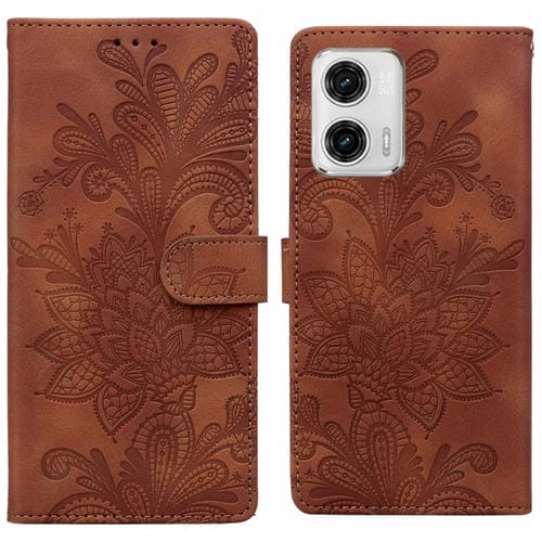 Funda de Cuero Motorola Moto G73 con Hebilla Magnética y Diseño Floral (Marrón)