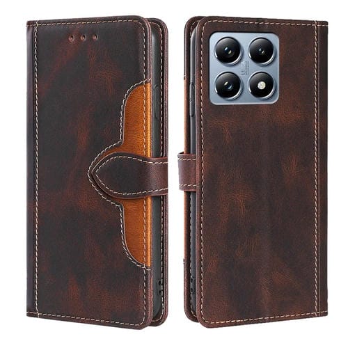 Funda de Cuero con Hebilla Magnética y Tacto de Piel para Xiaomi 14T Pro 5G (Marrón)