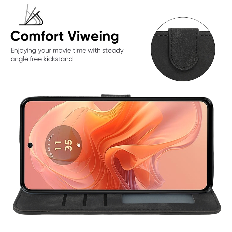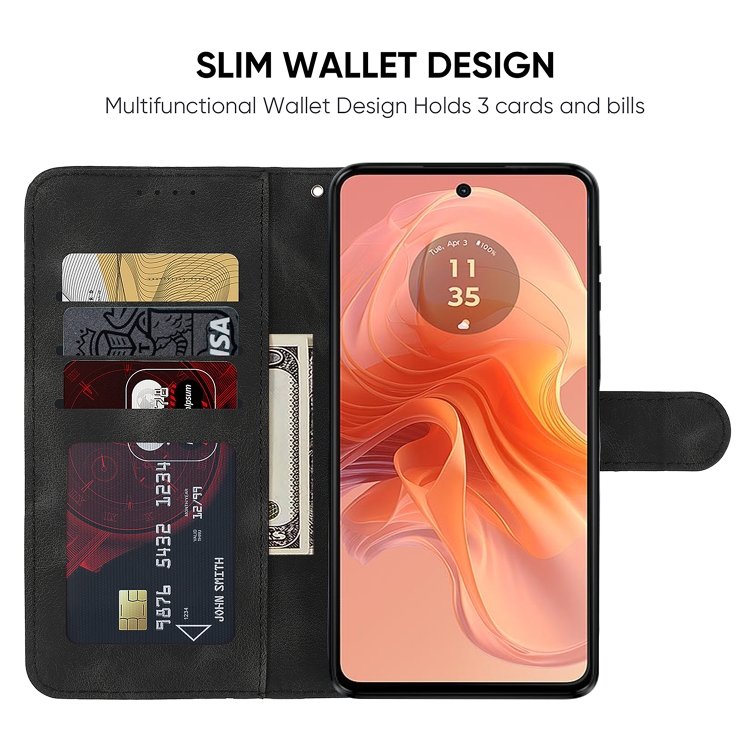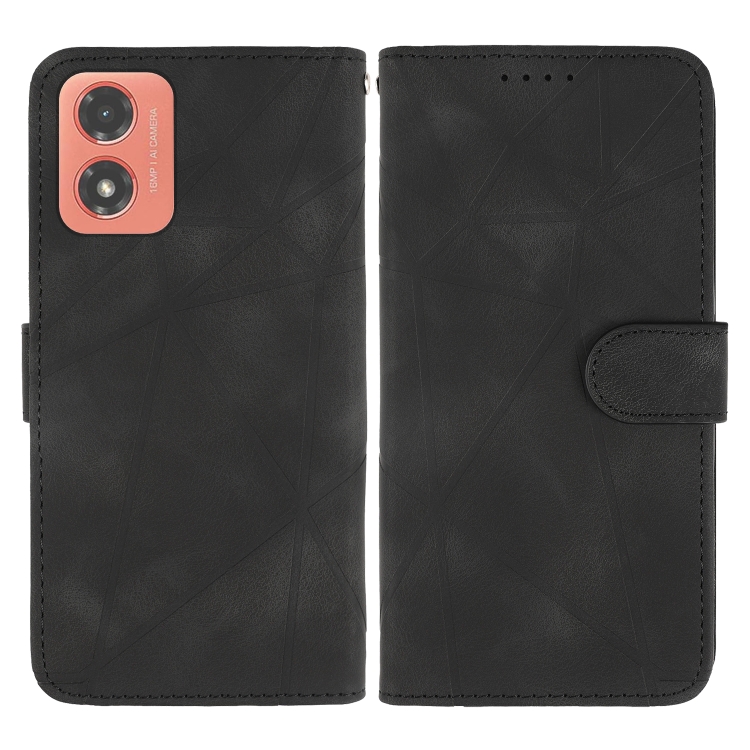 Funda de Cuero para Motorola Moto G04 con Líneas Geométricas y Tacto Suave (Negro)