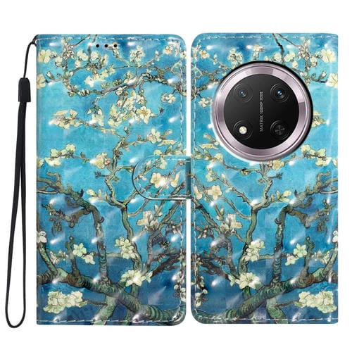 Funda de Cuero con Patrón 3D para Honor X9C 5G (Flor de Albaricoque) (Azul)