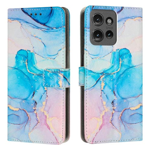 Funda de Cuero con Patrón de Mármol para Motorola Edge 50 Pro y Edge 50 (Rosa y Verde)
