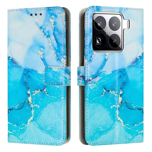 Funda De Cuero Con Patrón De Mármol Pintado Para Teléfono Xiaomi 15 Pro (Azul Verde)