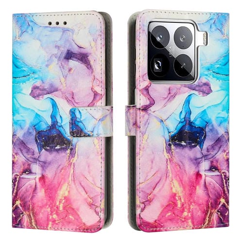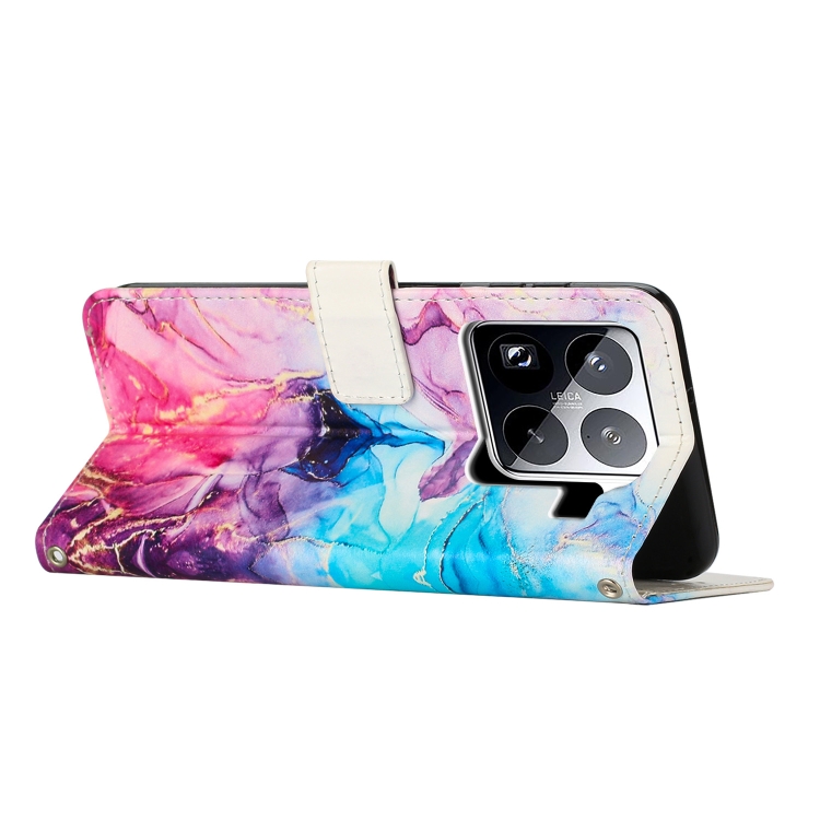 Funda De Cuero Con Patrón De Mármol Pintado Para Teléfono Xiaomi 15 Pro (Rosa Y Morado)