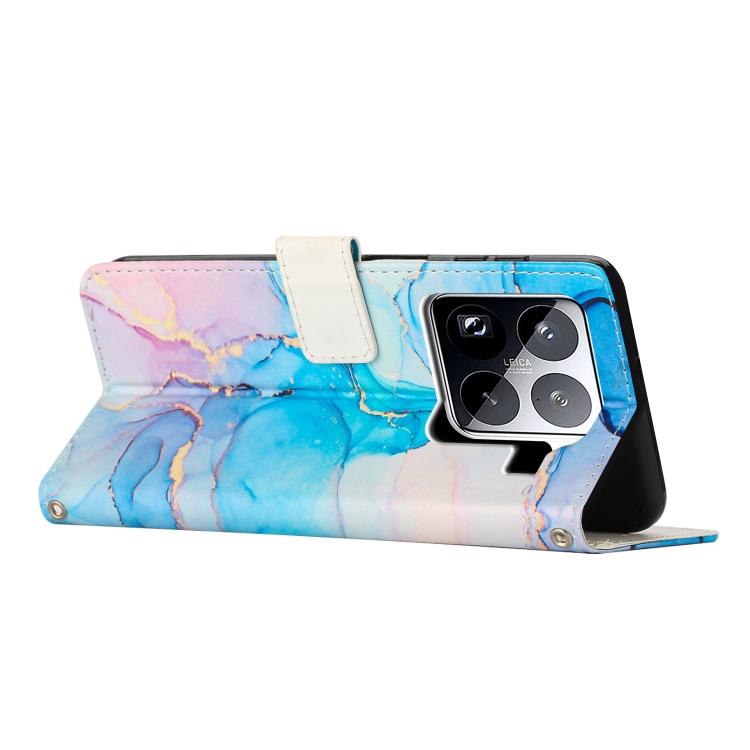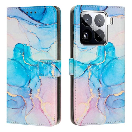 Funda De Cuero Con Patrón De Mármol Pintado Para Teléfono Xiaomi 15 Pro (Rosa Y Verde)