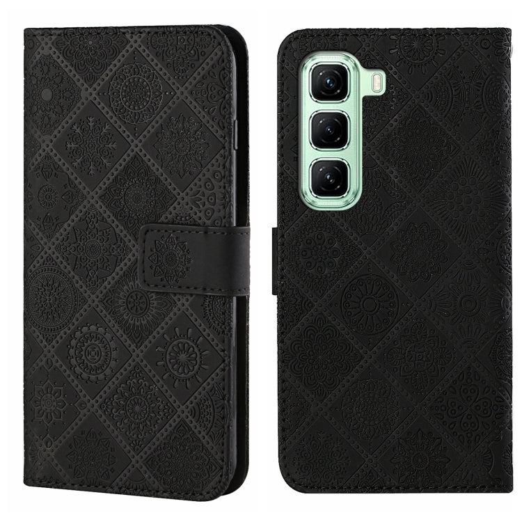 Funda de Cuero para Infinix Hot 50 4G con Patrón En Relieve Estilo Étnico (Negro)