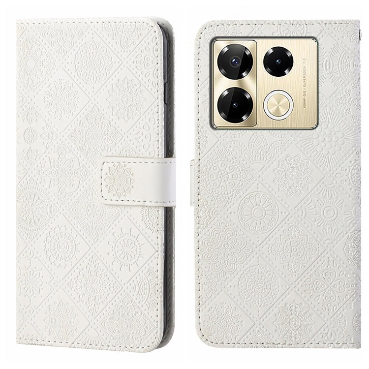 Funda de Cuero con Patrón en Relieve Estilo Étnico para Infinix Note 40 Pro (Blanca)