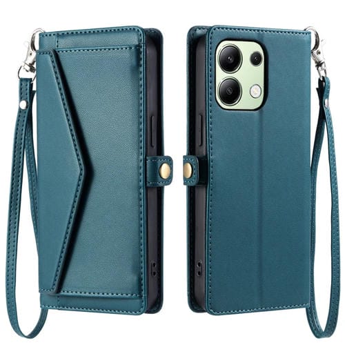 Funda de Cuero con Ranura para Múltiples Tarjetas y Billetera Global para Redmi Note 13 4G con Cordón (Verde)