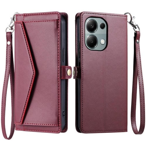 Funda de Cuero con Ranura para Múltiples Tarjetas y Billetera Global para Redmi Note 13 Pro 4G con Cordón (Rojo Vino)