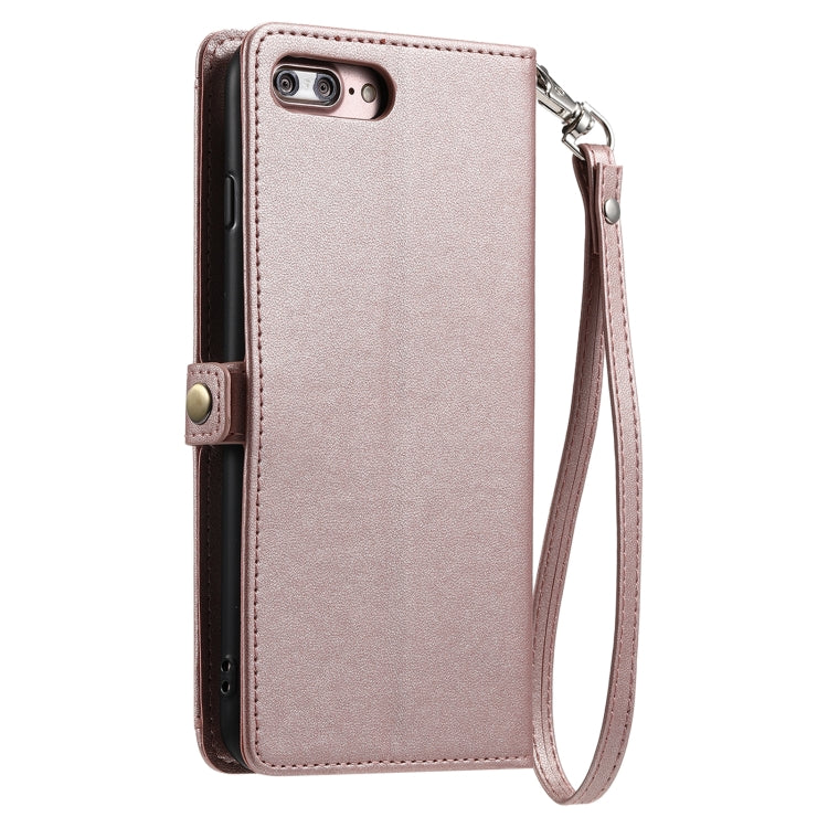 Funda de Cuero para iPhone 8 Plus/7 Plus Ranura Múltiples Tarjetas Cordón (Oro Rosa)