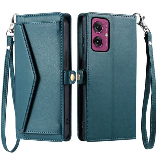 Funda de Cuero para Motorola Moto G55 con Ranura para Tarjetas y Cordón (Verde)