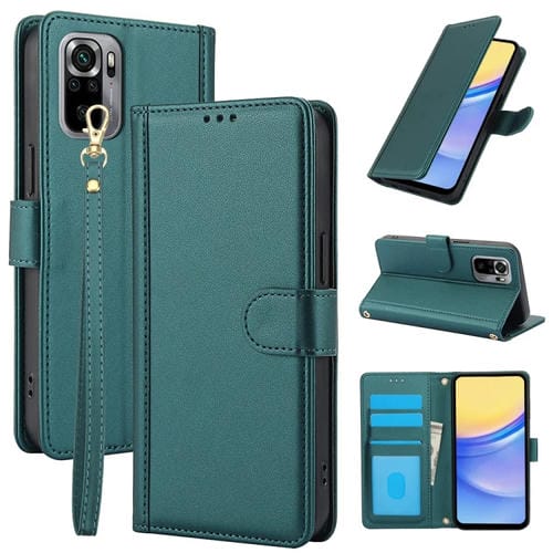Funda de Cuero con Ranuras para Tarjetas y Diseño de Piel Sintética de Color Puro para Redmi Note 10 4G/Note 10S 4G con Cordón Doble (Verde)