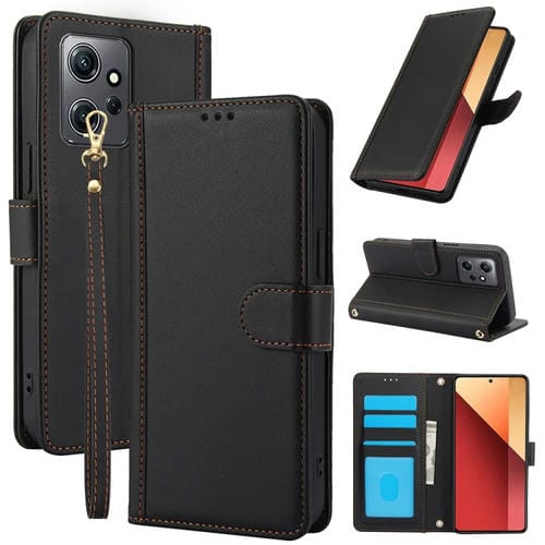 Funda de Cuero con Ranuras para Tarjetas y Tacto de Piel Global para Redmi Note 12 4G con Cordón Doble (Negro)
