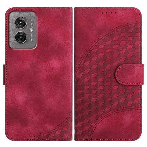 Funda de Cuero con Relieve Cabeza de Elefante para Motorola Moto G55 Yx0060 con Cordón (Rosa Rojo)