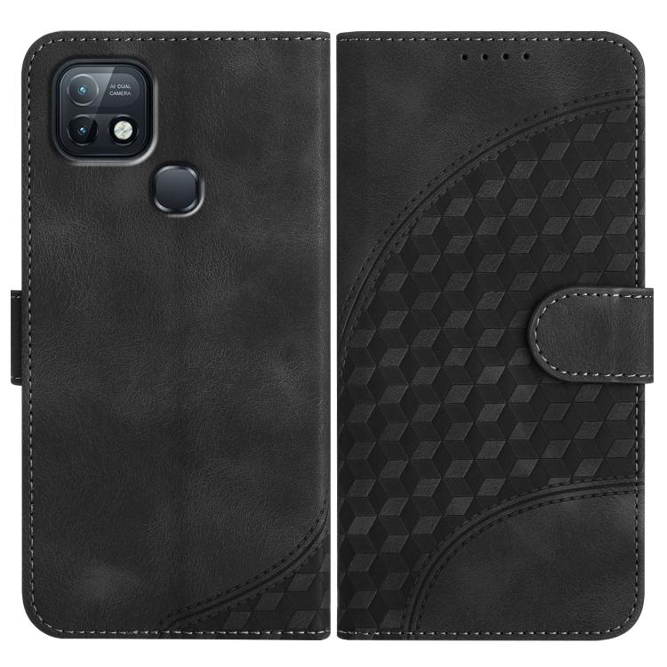 Funda de Cuero con Relieve Cabeza de Elefante para Infinix Hot 10I con Cordón (Negro)